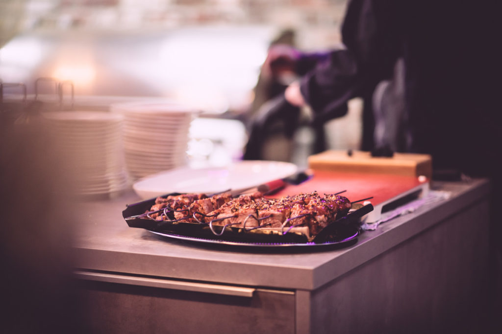 2004 ging es los mit dem Grillgeschäft. Entstanden aus der Begeisterung für dieses Hobby begann Rui Santos Geräte zu kaufen, die jenseits vom Tankstellen-Dreibeiner sind. Einfach nur, weil er etwas Vernünftiges wollte. Und das wollten viele andere auch. Was dann zum Verkauf aus der Garage wurde, ist heute in einer fantastischen Location mit altem Industrie-Charme untergebracht. Die Backsteingebäude allein sind schon eine Reise wert. Und in den derb rustikal eingerichteten Seminarräumen geben ausgebildete Köche dann ihr Wissen weiter. Wie heiß, wie lange, vorwärts oder rückwärts gegrillt u.s.w. Aber es wird nicht nur dieses wertvolle Wissen geteilt, sondern auch die Arbeit. Jeder muss oder darf ran. Fleischstücke passend schneiden, mit Honig und Gewürzen einreiben, was Experten auch „rubben“ nennen, und natürlich auch die Beilagen zubereiten.